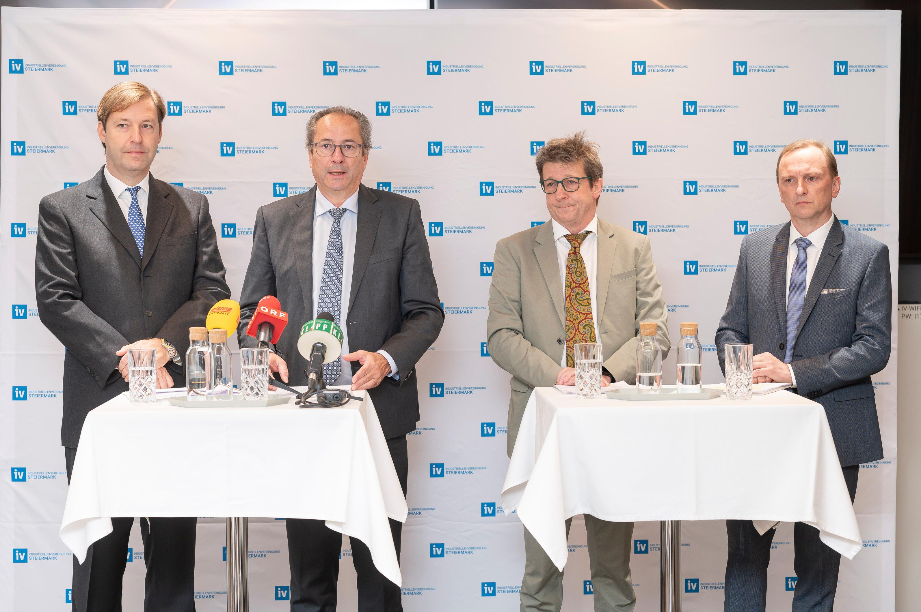 Wirtschaftslandesrätin Barbara Eibinger-Miedl, Kurt Maier, Präsident der IV-Steiermark und Josef Herk, Präsident der Wirtschaftskammer Steiermark